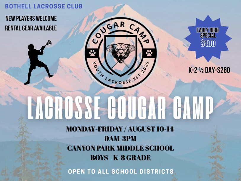 Join us this summer for the Cougar Lacrosse Camp, where players of all skill levels will sharpen their game, build confidence, and have a blast with top-tier coaching in a fun, supportive environment by! Our camp focuses on developing fundamental skills, game awareness, and teamwork—all while fostering a love for the game. Whether you're picking up a stick for the first time or looking to elevate your play, this is the perfect opportunity to grow as an athlete and teammate. Don’t miss out—register today and be part of the l lacrosse community!